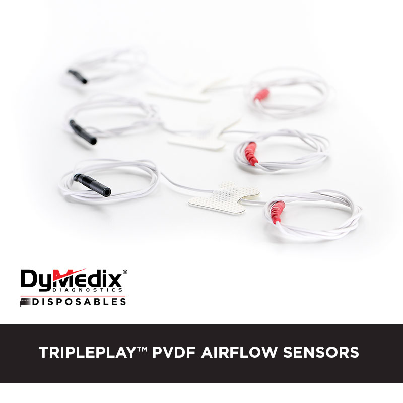 Dymedix Diagnostics patented PVDF design allows for our TriplePlaytm Airflow Sensors, PerfectFittm Effort Sensors and AccuSnoretm Snore Sensors to respond to movement, pressure, strain, temperature and vibration resulting in the most sensitive and robust sleep sensors available today.