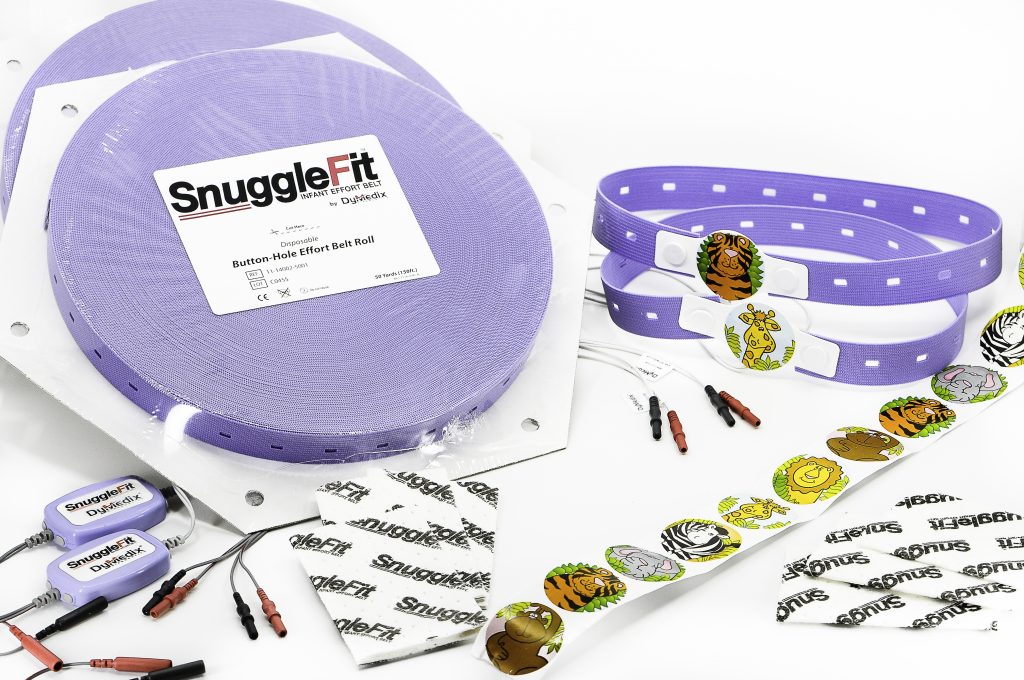 The SnuggleFittm Infant Effort Belt is a disposable respiratory effort system designed specifically for infants. The PVDF based SnuggleFittm responds to both strain and pressure and incorporates our disposable cut-to-size Button-Holetm Strapping material. The optional Comfort Wrap is also available for extra sensitive pediatric patients.