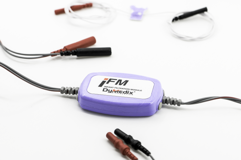 The Dymedix iFM is a specialized airflow interface cable for the Lullabytm line of pediatric airflow sensors. It incorporates a filtration module that boosts and filters airflow waveforms allowing for more accurate and detailed sensing of airflow activity from neonate and infant patients.